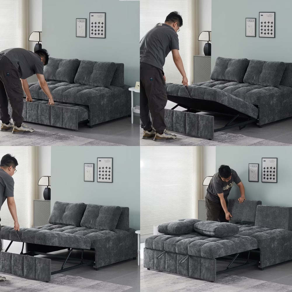 הספה נוחה לישיבה ונפתחת בקלות למיטה רחבה.